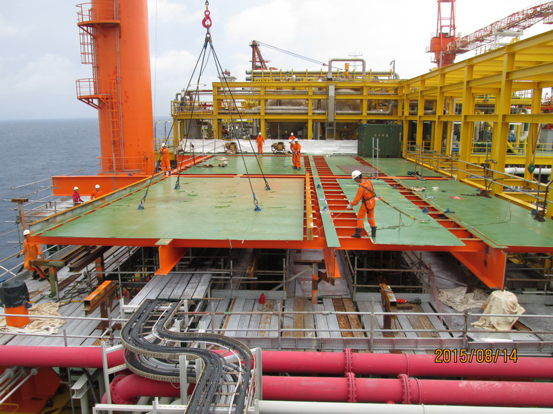 該油田群開發(fā)工程由中海石油(中國)有限公司設計;深圳市盛福機械設備有限公司(以下簡稱深圳盛福)參與海洋石油118 FPSO改造、恩平24-2DPP平臺的總包改造。深圳盛福承攬了該改造工程的管線制作與安裝約300噸,主要大型撬塊設備6個,主要大型電氣設備7臺,火控和噴淋消防系統(tǒng)的增設及改造;中控系統(tǒng)的升級改造;因新增設備而配套增加的火氣探頭、渦輪流量計、質(zhì)量流量計等儀表相關工作;因依托EP24-2 DPP為EP23-1DPP和EP18-1DPP供電的海纜鋪設和接線箱熔接等相關電氣工作;HYSY118 FPSO預留區(qū)新建甲板平臺(約600平方)及電脫水撬等大型撬塊設備的海上吊裝與就位;工期歷時14個月。該油田群開發(fā)工程的順利投產(chǎn),為深圳盛福在中海油深圳分公司,承攬大型改建工程寫下了新的詩篇。