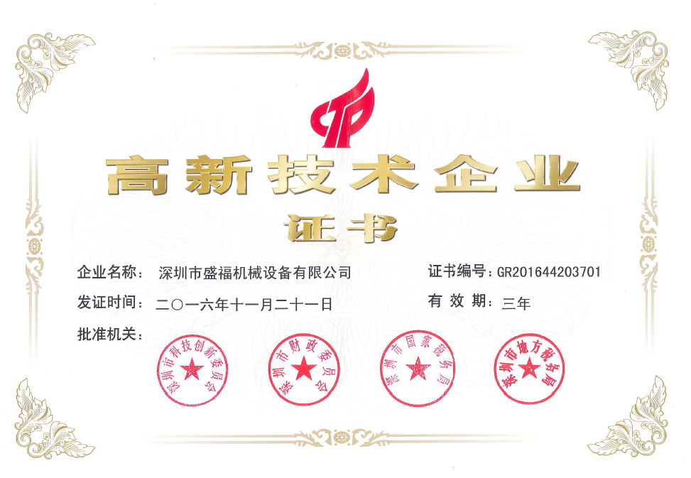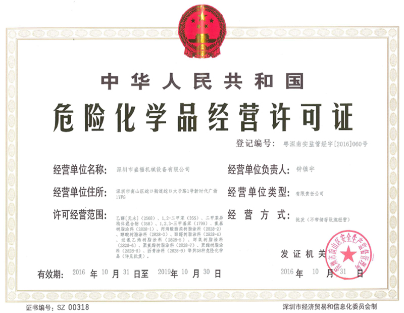 高新技術企業(yè)證書 、深圳市盛福機械設備有限公司-危險化學品經(jīng)營許可證