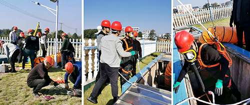 演練過程中,操作人員拉起安全警戒線、進行強制通風(fēng)、開展氣體檢測、填寫下井作業(yè)票并報批,隨后依次開展了人員下井、井內(nèi)清淤、淤泥提升、淤泥堆放及外運、人員升井、模擬人員受傷現(xiàn)場急救處置、拆除警戒線、清理現(xiàn)場、現(xiàn)場點評等一系列環(huán)節(jié)。整個過程,全員服從指揮、配合密切,對模擬事故反映迅速、判斷準確,切實加深了對有限空間作業(yè)危害性的認識,提高了應(yīng)急處置能力和反應(yīng)速度,達到了預(yù)期效果。