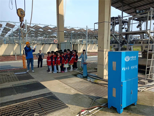 在“世界水日”和“中國水周”即將到來之際,3月14日,分宜中水環(huán)保有限公司舉辦了“污水處理廠開放日”活動,江西分宜第二中心小學的部分師生以及當?shù)孛襟w記者一行20多人參加了該活動。分宜中水總經(jīng)理陳文萍及相關負責人帶領一行人零距離感受了污水處理的全過程。
