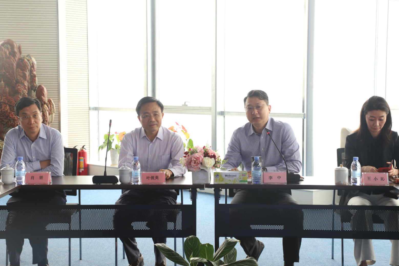 8月6日,粵民投董事長葉俊英、總經(jīng)理肖堅、高騰控股總裁丁靚等一行5人蒞臨金達環(huán)保考察,受到公司董事長李中、副董事長王小沁、總經(jīng)理黃偉才等的熱情歡迎。