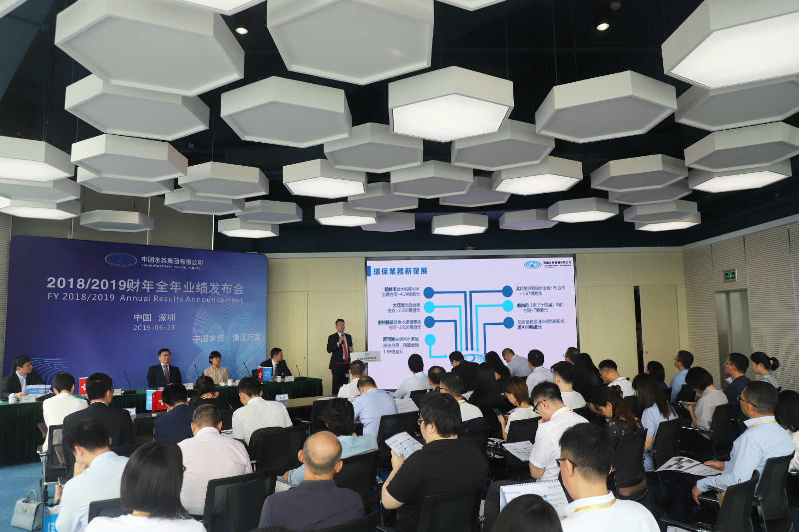 6月28日上午,中國水務(wù)2018/19財年全年業(yè)績發(fā)布會在深圳榮超經(jīng)貿(mào)中心召開。