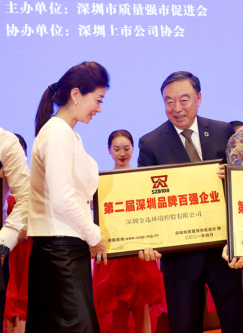 5月7日下午,在“中國品牌日”(5月10日)來臨之際,第二屆深圳市品牌建設(shè)促進(jìn)大會(huì)暨深圳經(jīng)濟(jì)特區(qū)建立40周年深圳質(zhì)量建設(shè)功勛人物表彰大會(huì)隆重召開;深圳市政協(xié)副主席徐友軍,深圳市政府原副市長陳彪,深圳市質(zhì)量強(qiáng)市促進(jìn)會(huì)會(huì)長、原招商銀行行長馬蔚華等出席大會(huì)并為獲獎(jiǎng)?wù)哳C獎(jiǎng)。深圳金達(dá)環(huán)境控股有限公司獲頒第二屆“深圳品牌百強(qiáng)”企業(yè)榮譽(yù)。